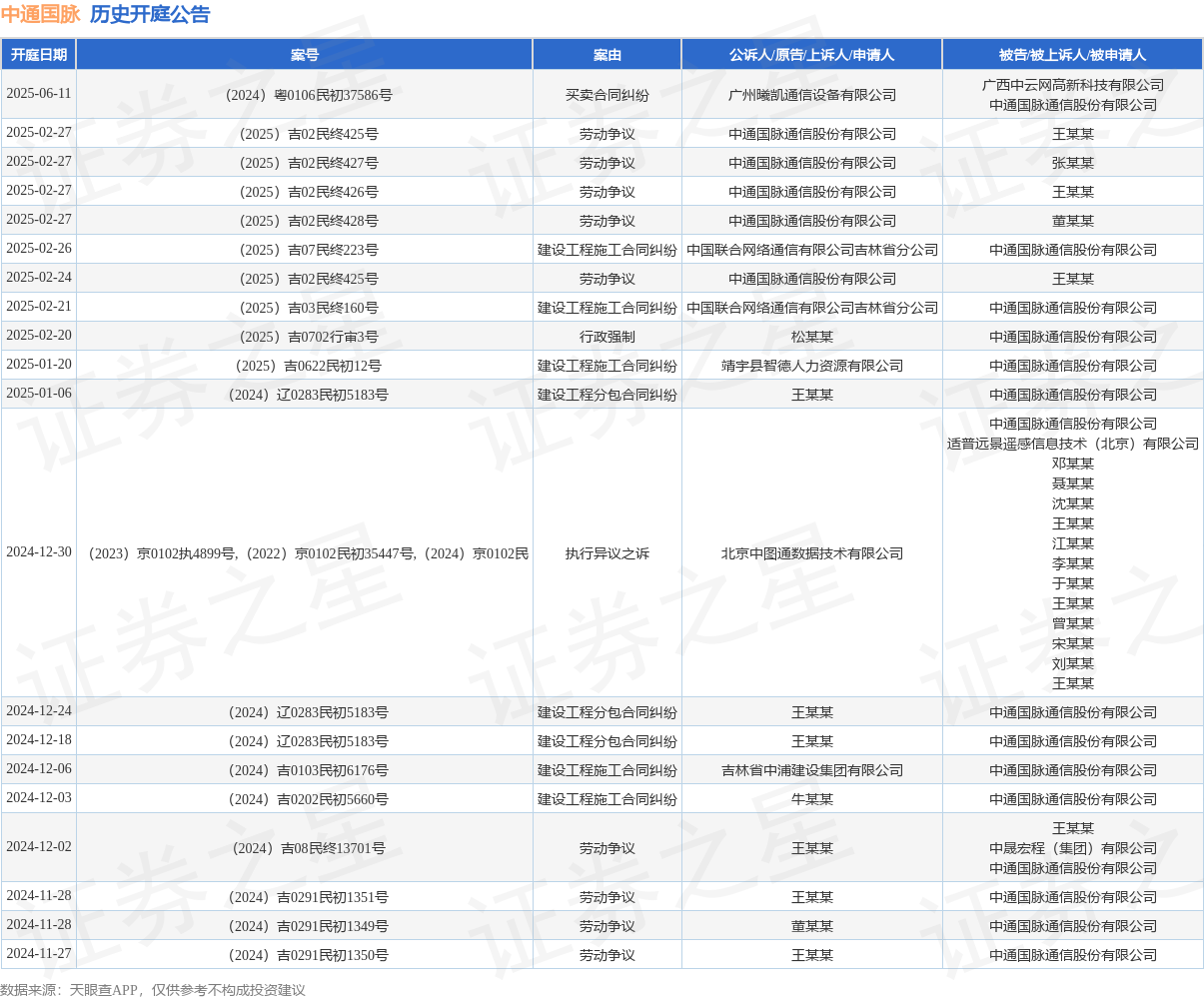 本站消息,根据天眼查APP显示,近日公布了一则中通国脉通信股份有限公司作为被告/被上诉人的开庭公告,详细内容如下:
